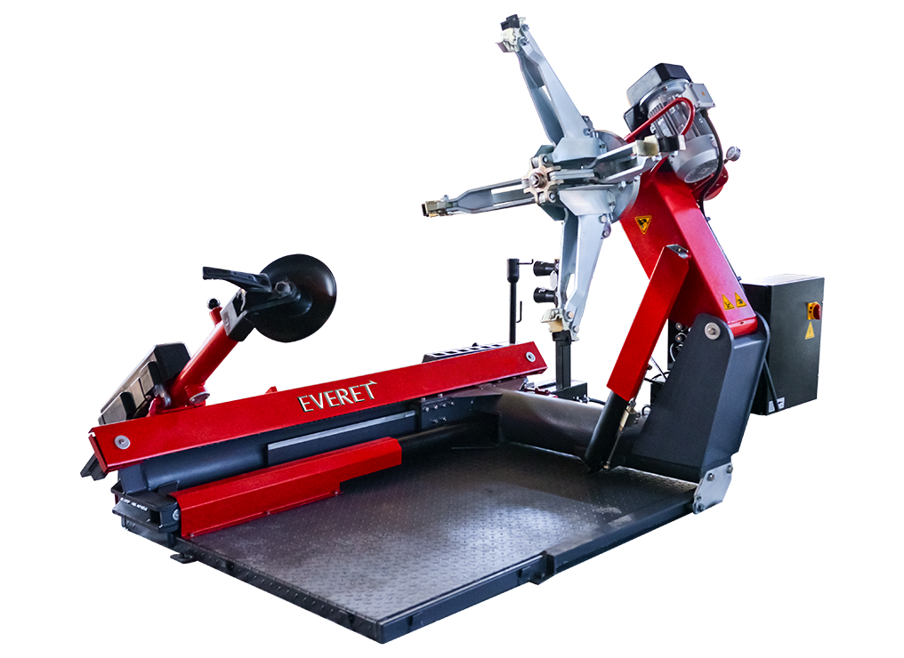 - Efficient electro-hydraulic-powered tire changer that combines a range of unique features and capabilities to make wheel service for trucks, buses, tractors and other specialized machinery faster, easier and more profitable.