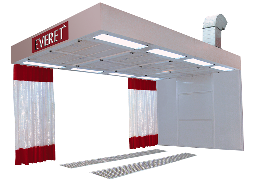 - Air enters the cabin through filtered plenum, and is exhausted through floor holes, and then clean air goes outside. The roof is with filter holder and light. It can do easy base painting.(Baking function as option)
