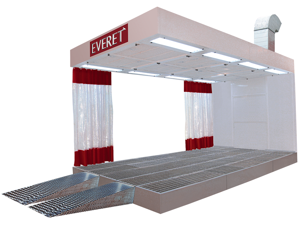 - Air enters the cabin through filtered plenum, and is exhausted outside through basement filtration. The roof is with filter holder and light. It can do easy base painting. (Baking function as option)